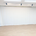 グリーン以外の背景布を使いたい場合は、天井のポールから吊るすことができます。